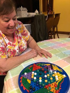 Either traditional games like cards, dominoes, or Chinese checkers, my mom’s favorite. However, when you have a shaky woman and a dystonic one, where the marbles will fall is anyone’s guess – which makes it part of the fun. Another way to stay mentally challenged and bring together the family or caregiver and patient alike is by watching game shows on TV. We have fun watching games like Idiot Test, Americans Say, and Family Feud and we all sit there trying to guess answers.